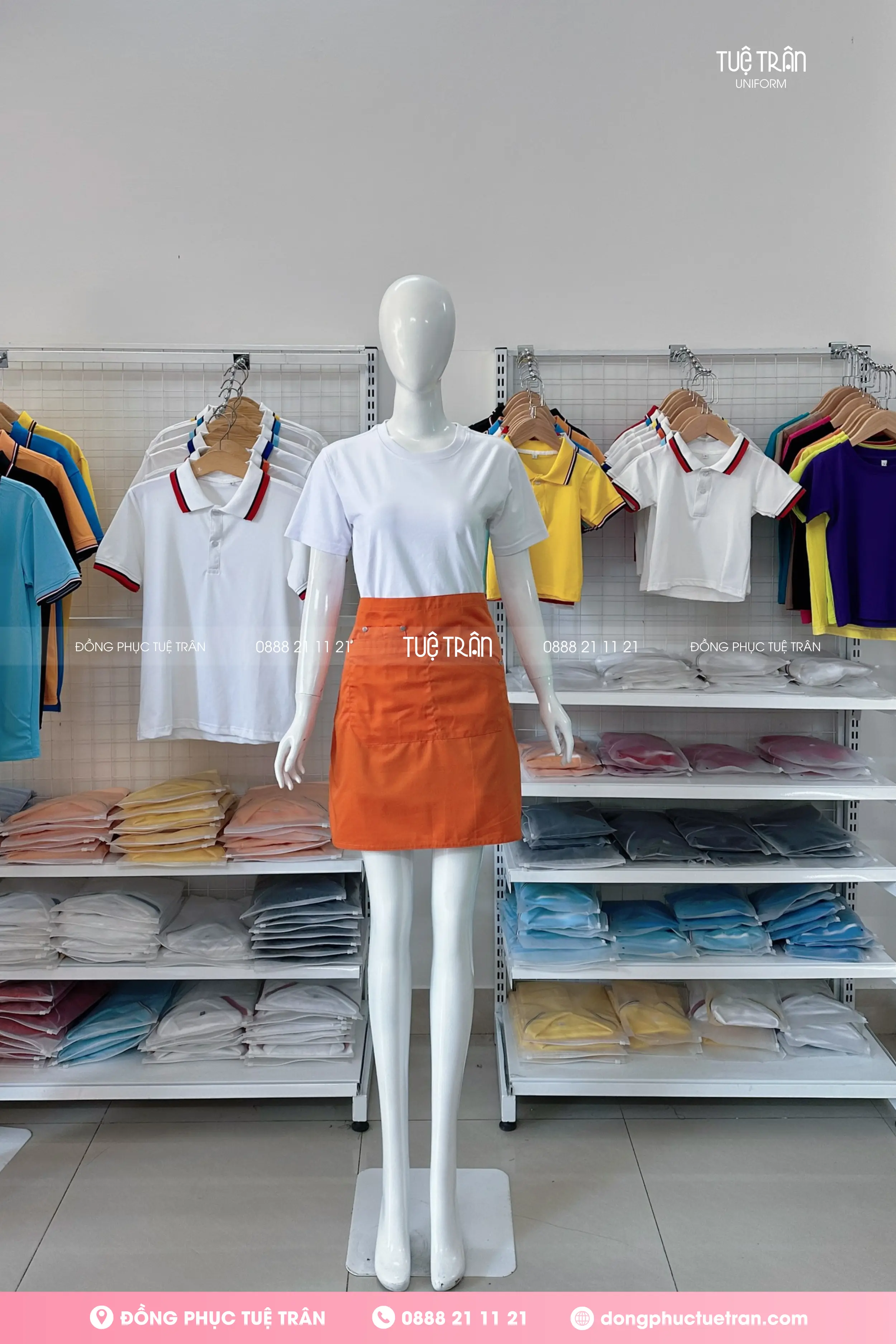 Đồng phục tạp dề ngắn 2 túi màu cam