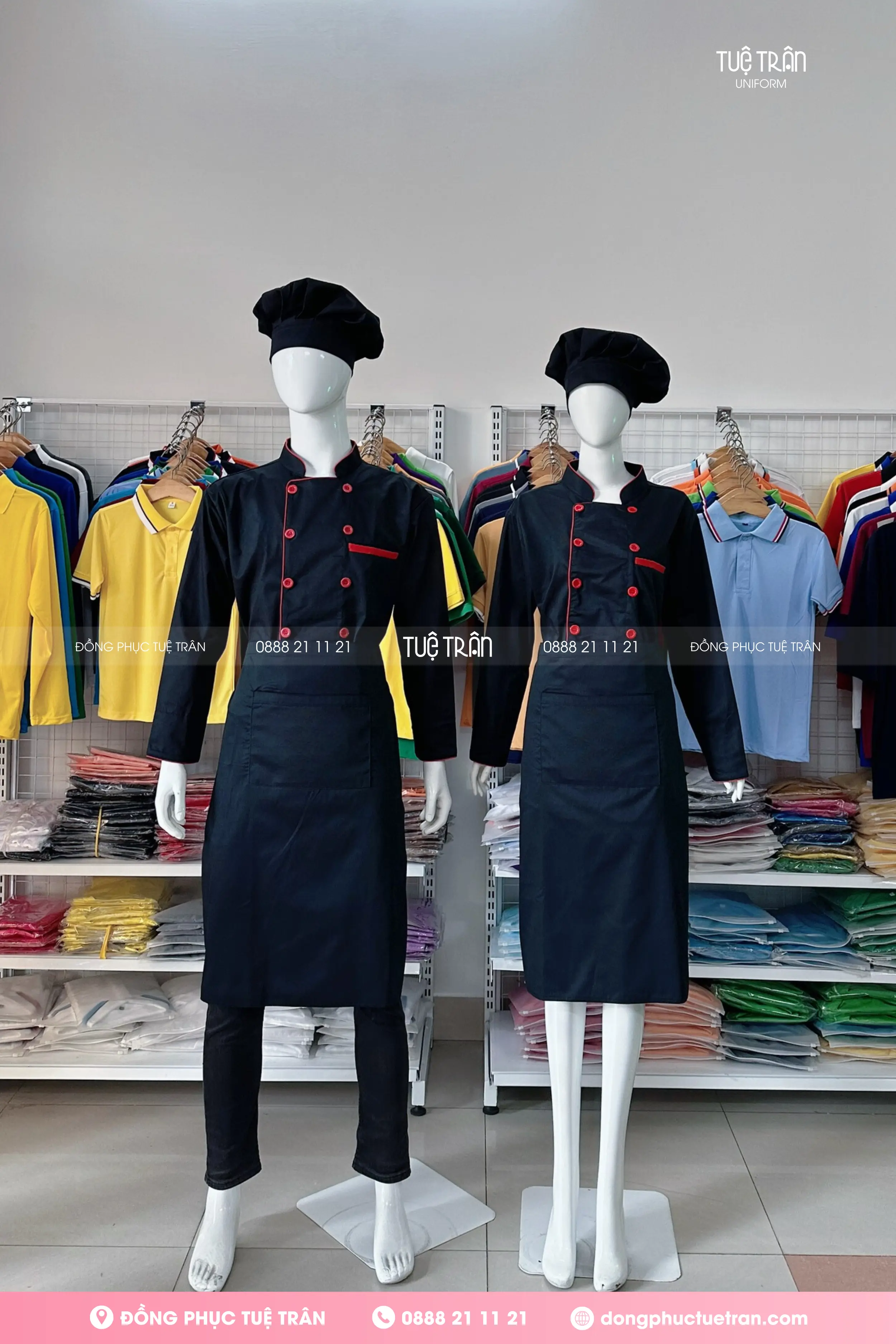Đồng phục tạp dề ngang gối màu đen
