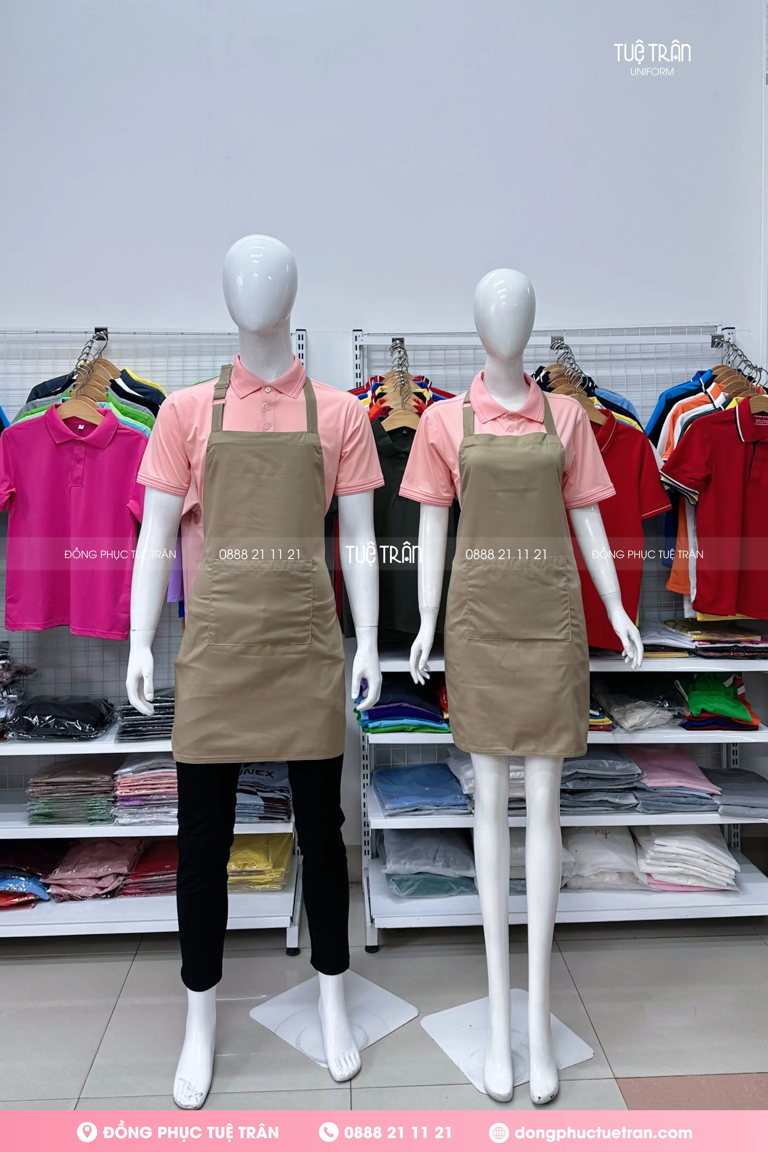 Đồng phục tạp dề yếm màu bò lợt