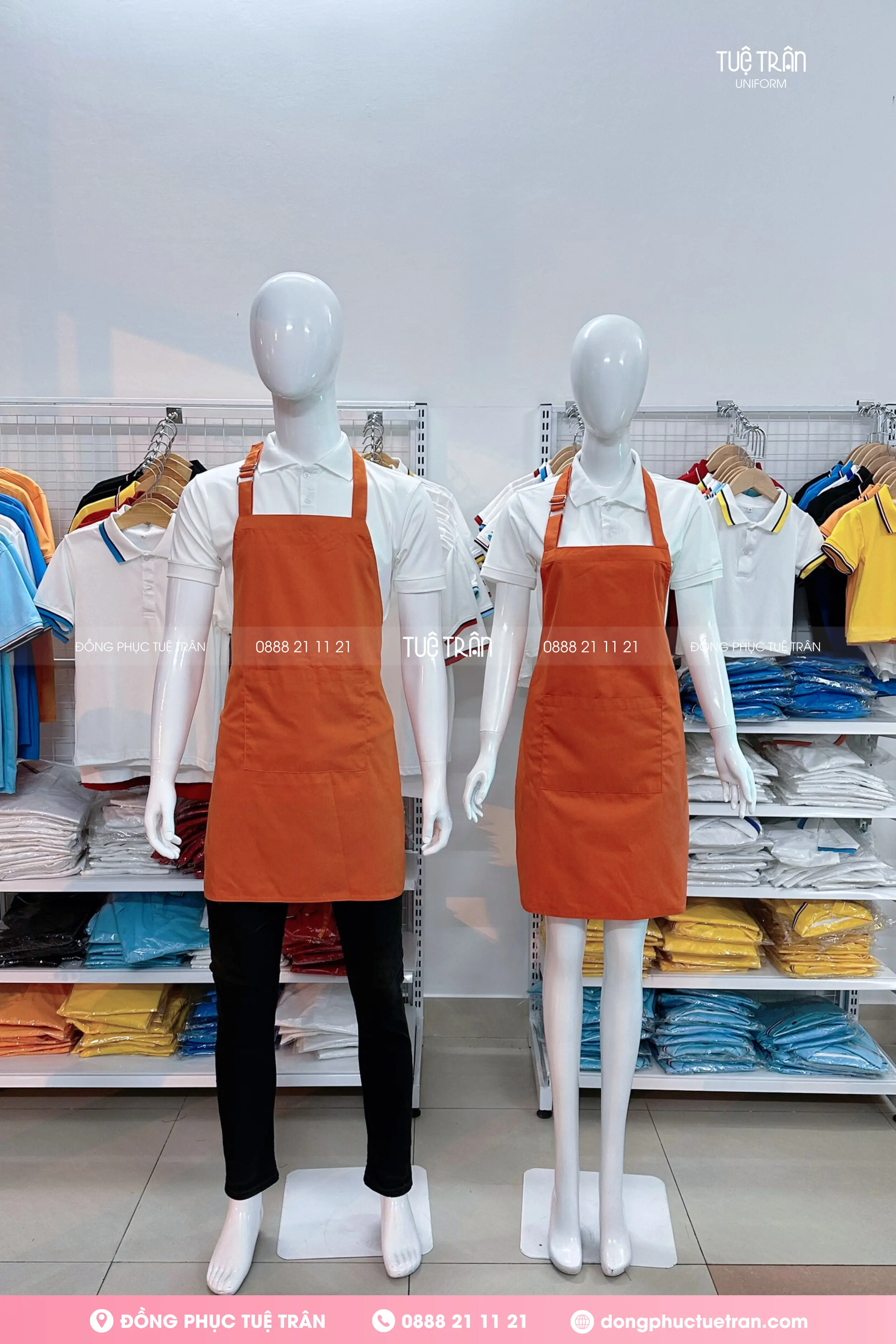 Đồng phục tạp dề yếm màu cam