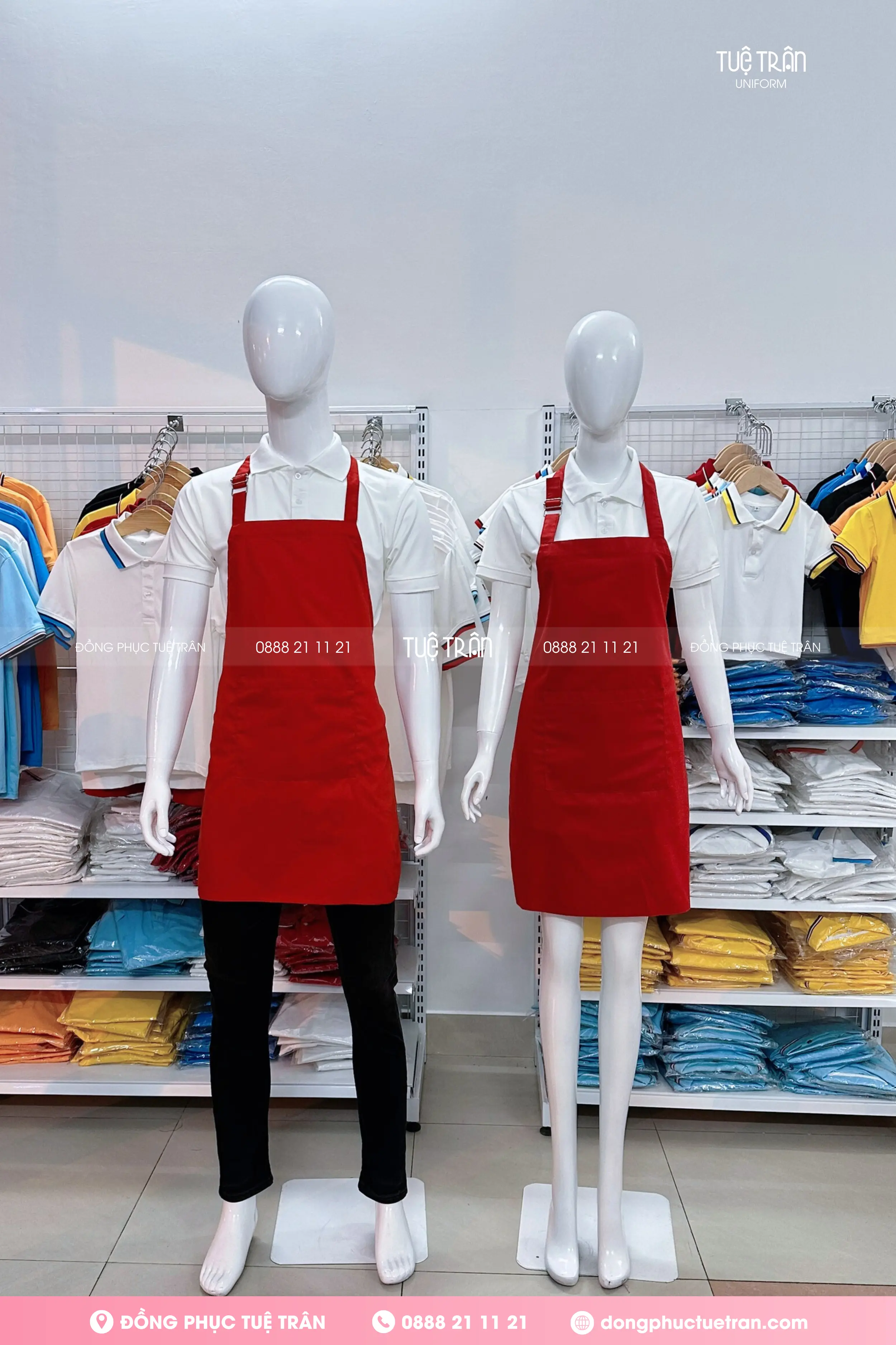 Đồng phục tạp dề yếm màu đỏ tươi