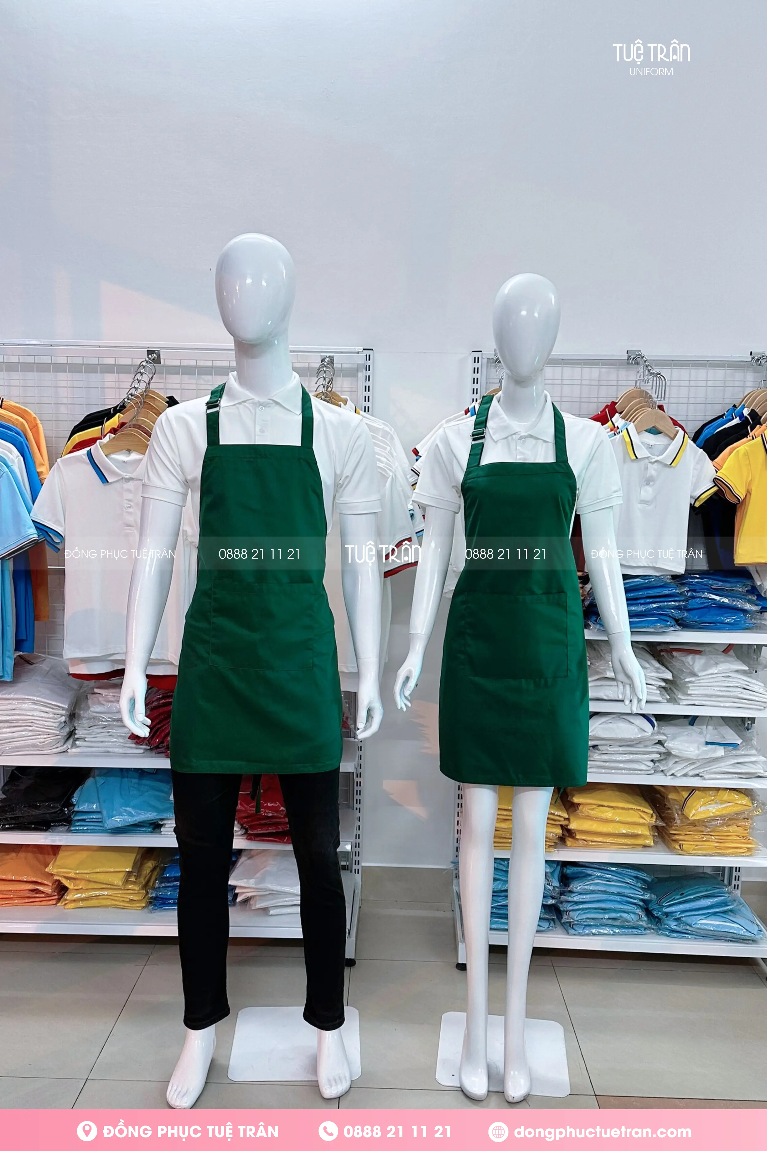 Đồng phục tạp dề yếm màu xanh lá đậm