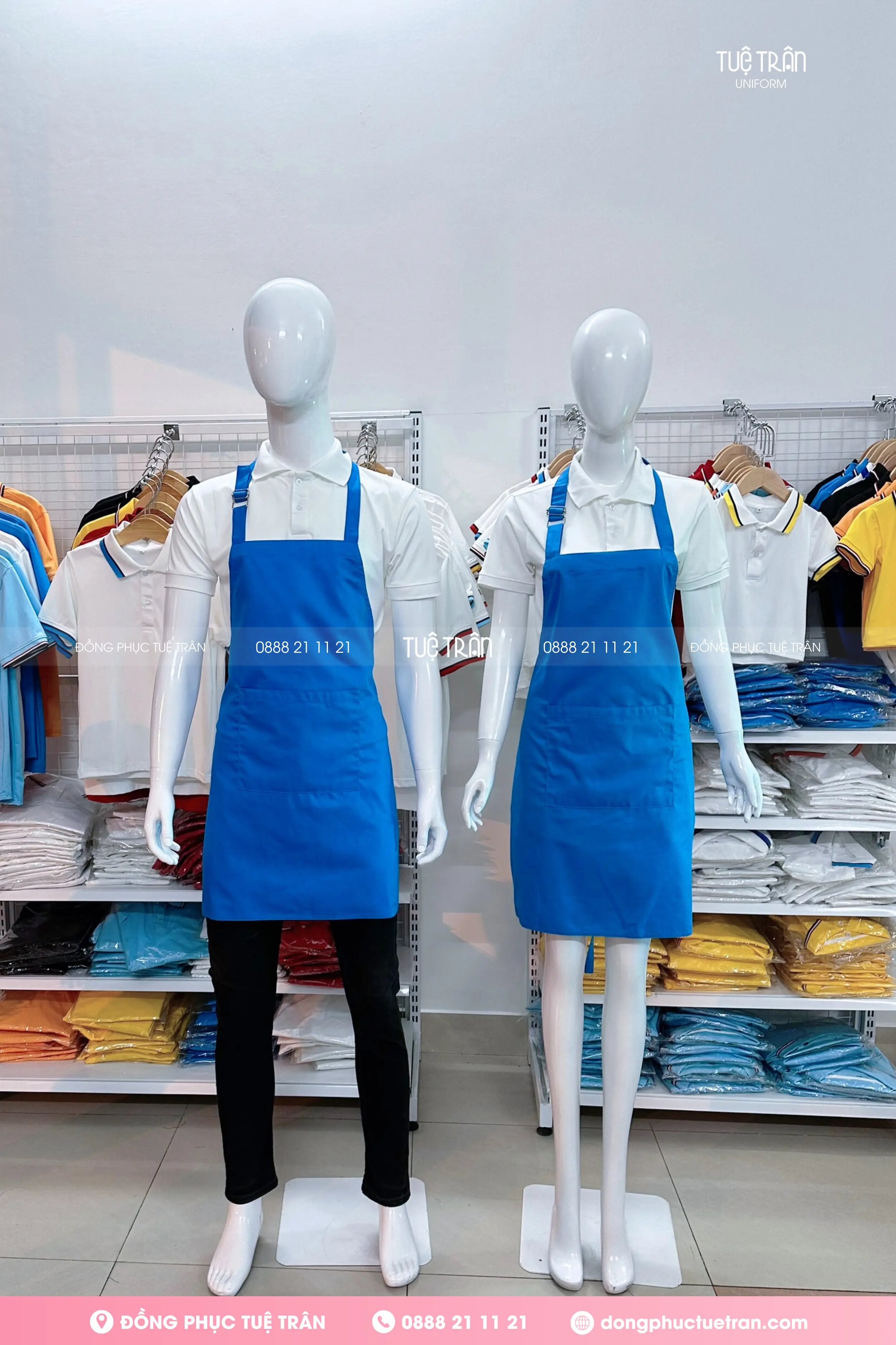 Đồng phục tạp dề yếm màu xanh ya