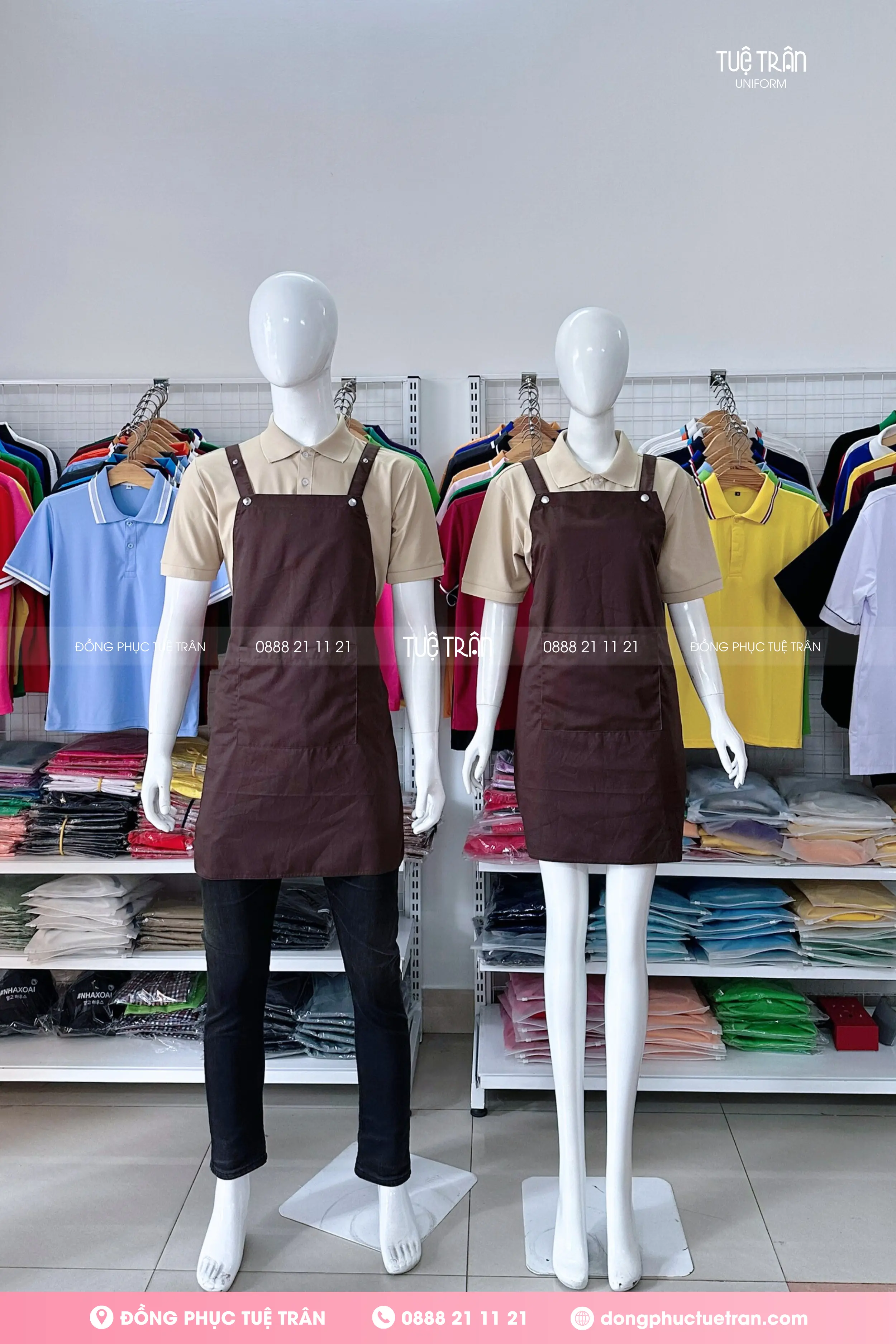 Tạp dề yếm đeo vai dây chữ H màu nâu