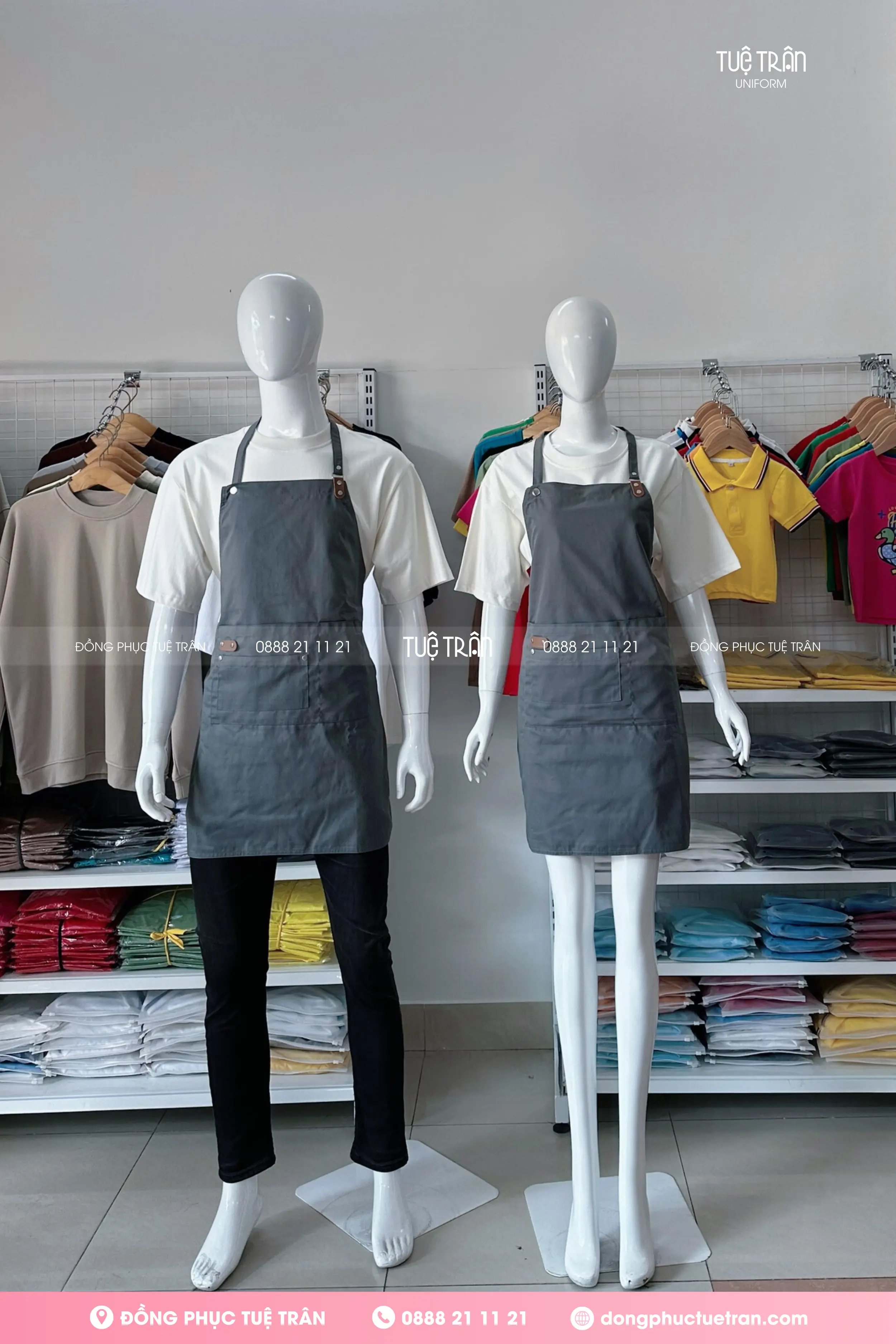 Tạp dề yếm phối da cao cấp màu xám đậm