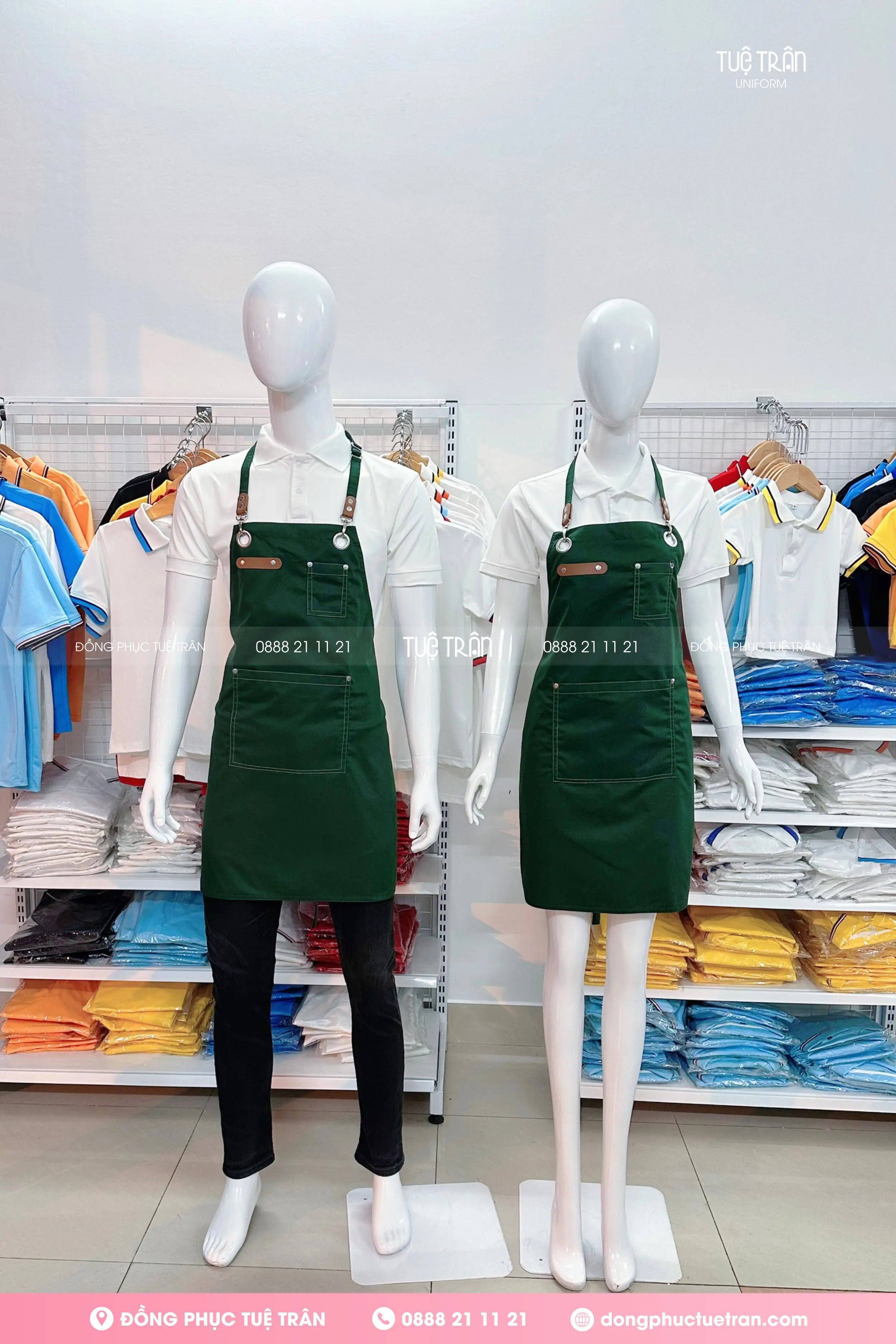 Tạp dề yếm phối da phối túi cao cấp màu xanh rêu